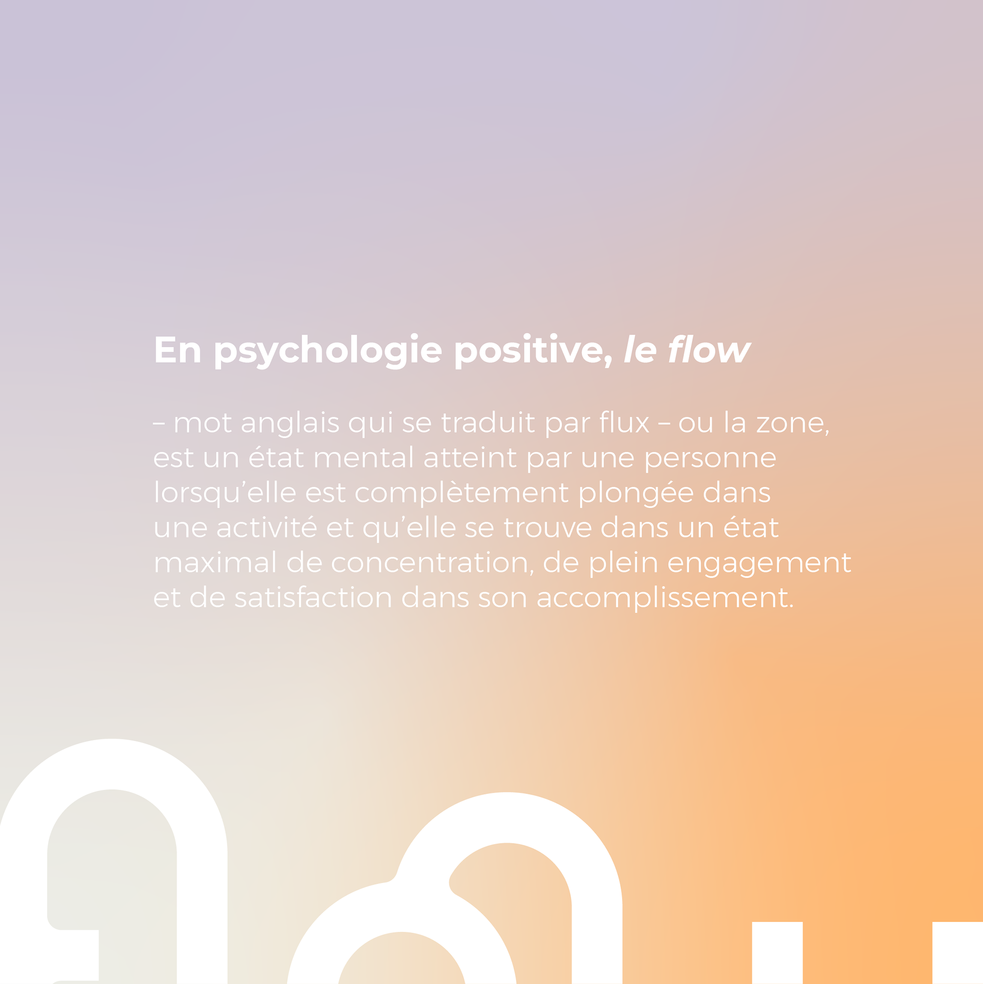 Logo identité visuelle | 2023 Île de la Réunion Flow consulting, c’est du conseil en entreprise dans le domaine du bien-être au travail, de l’audit à la solution! *En psychologie positive, le flow – mot anglais qui se traduit par flux –, ou la zone, est un état mental atteint par une personne lorsqu'elle est complètement plongée dans une activité et qu'elle se trouve dans un état maximal de concentration, de plein engagement et de satisfaction dans son accomplissement.