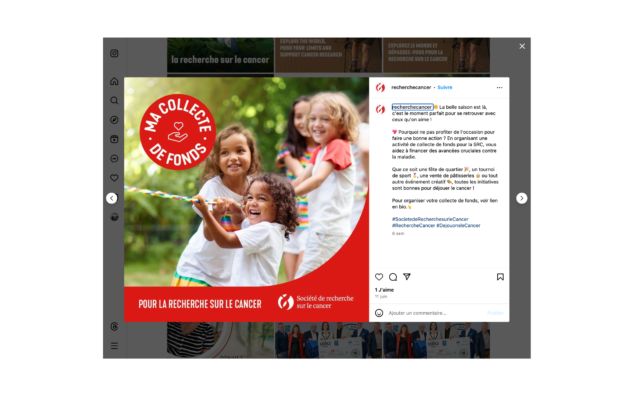 Réalisation: icône « ma collecte de fonds », grille graphique, recherche de photos et déclinaison des différents supports de communication en français et anglais pour la campagne Collecte de fonds.